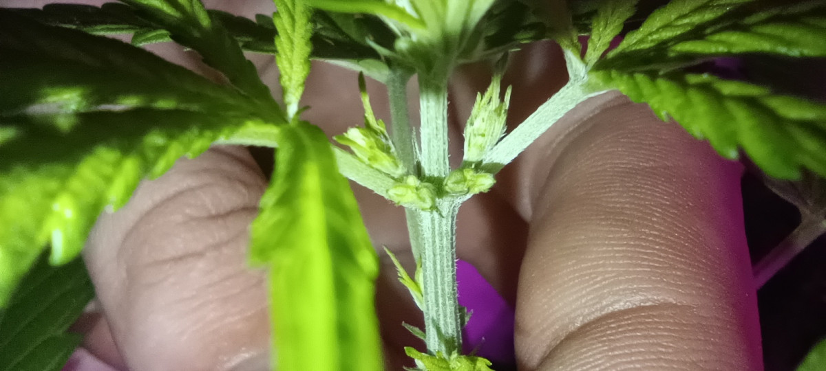 При переходе в вазу цветения, в местах ответвления боковых побегов и на верхушке, конопля начнет формировать предцветы. Первоначально они будут напоминать небольшие бугорки, но спустя несколько дней примут характерную форму для мужских и женских растений.